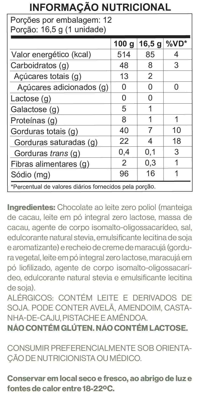 A primeira barra de chocolate ao leite com recheio de creme de maracujá no segmento saudável.